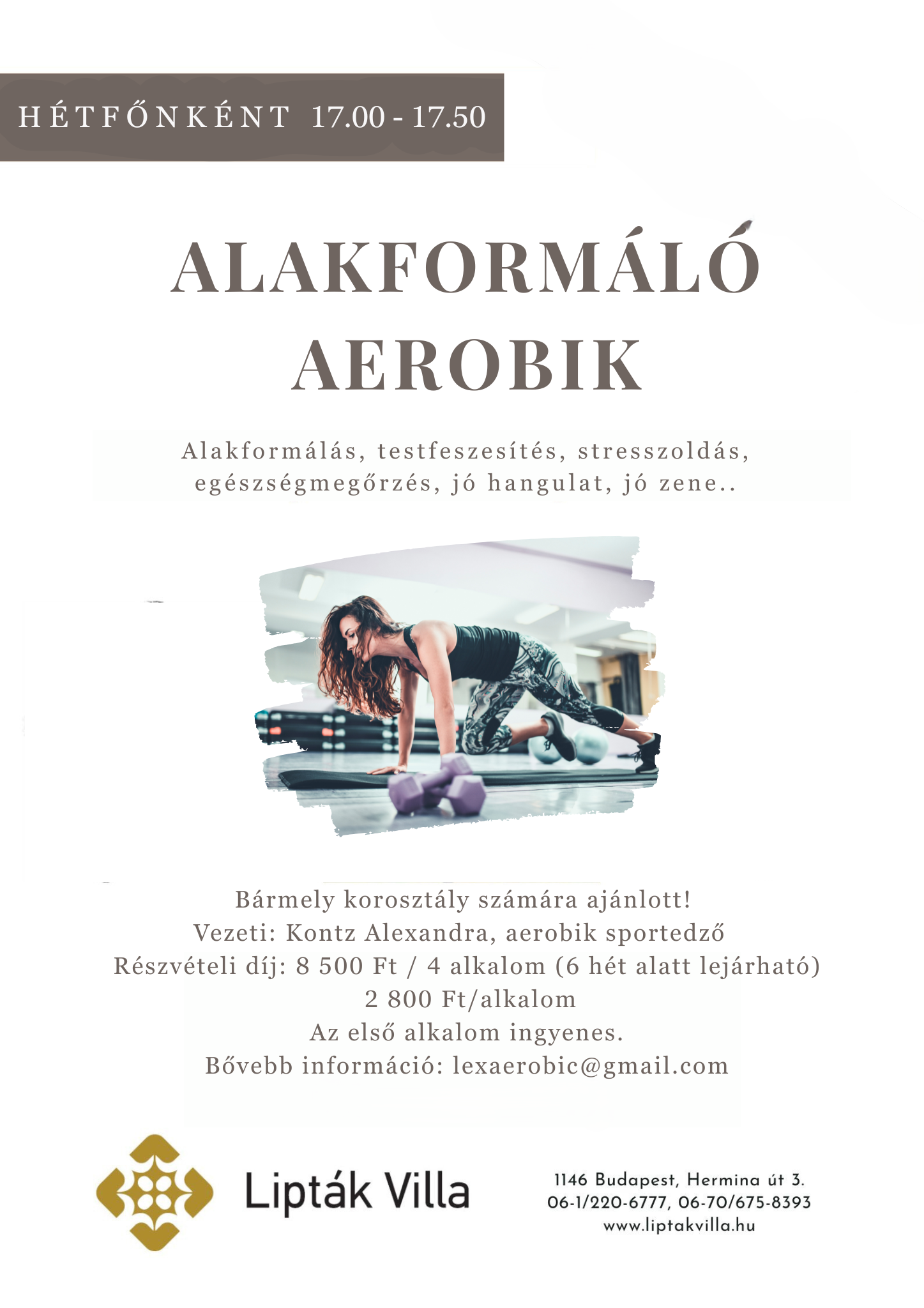 Információ: lexaerobic@gmail.com